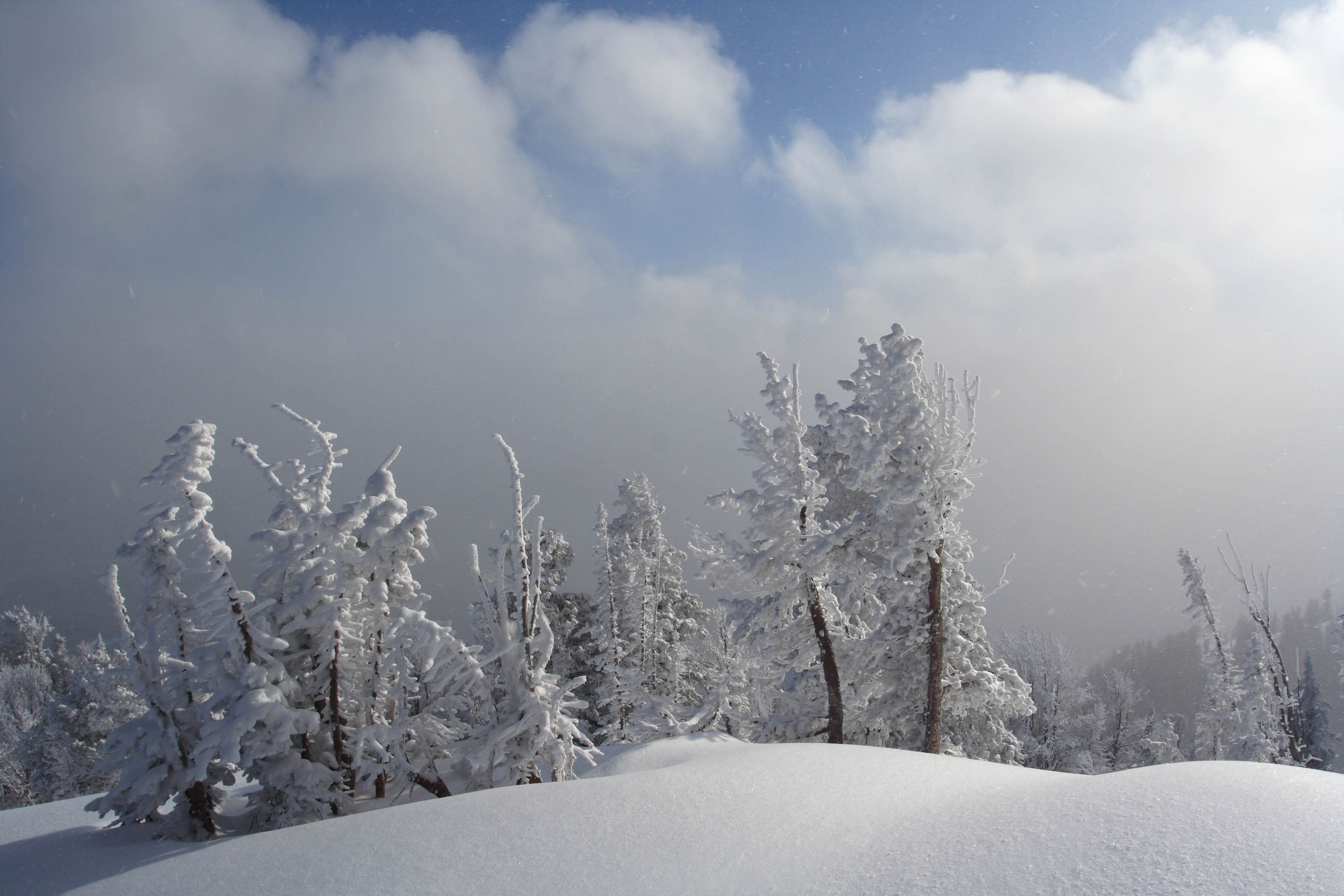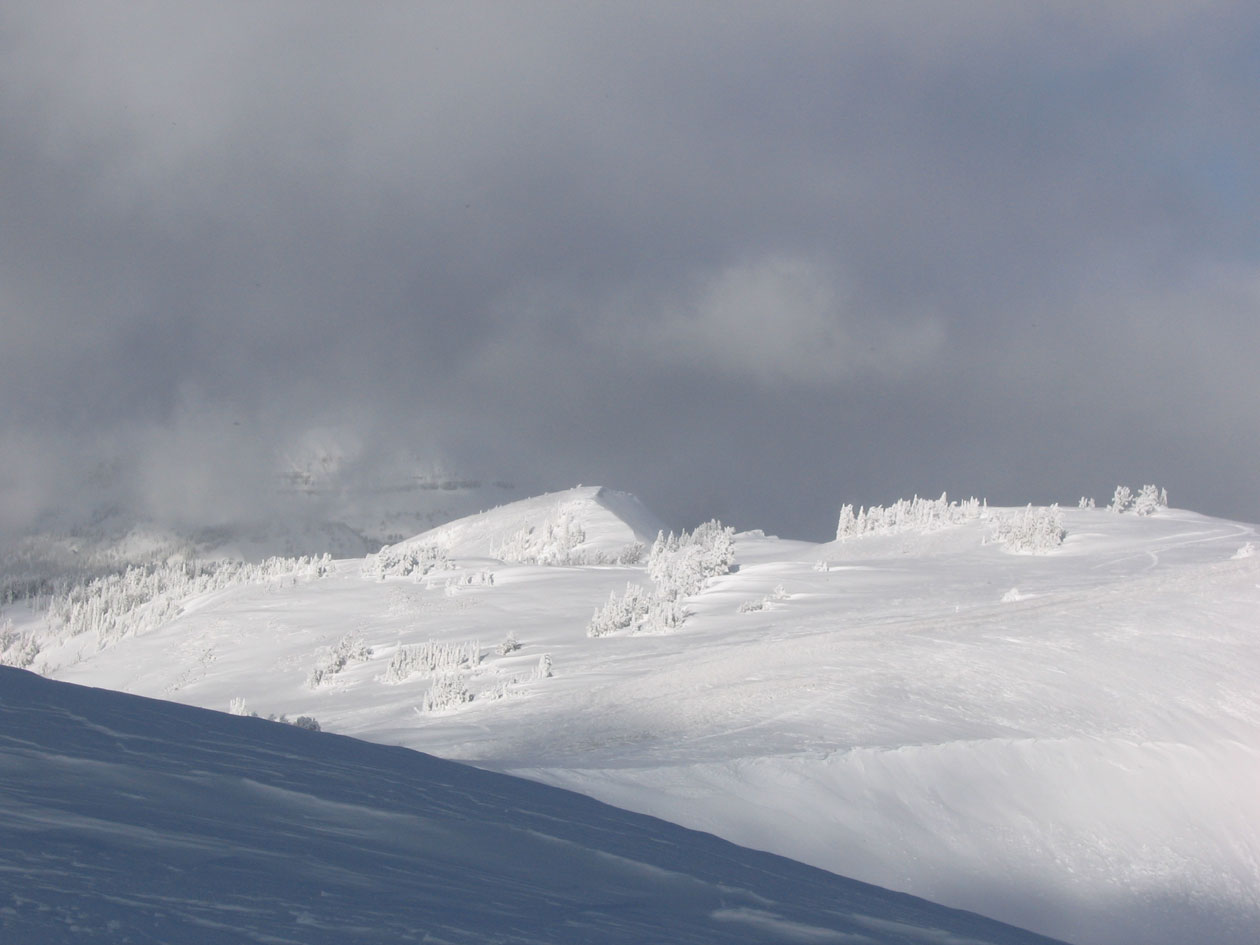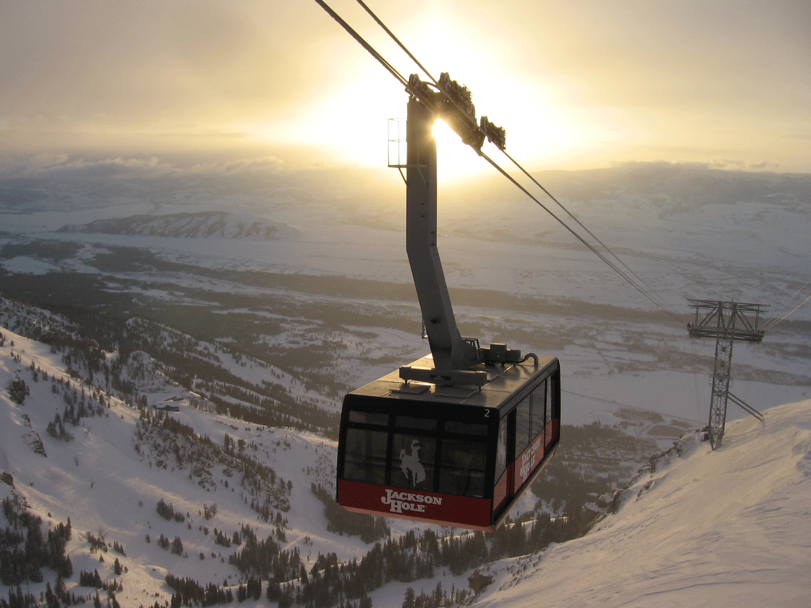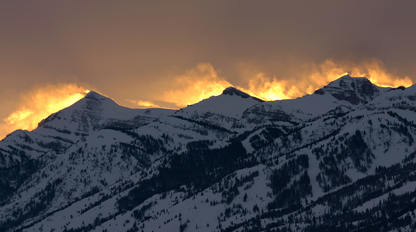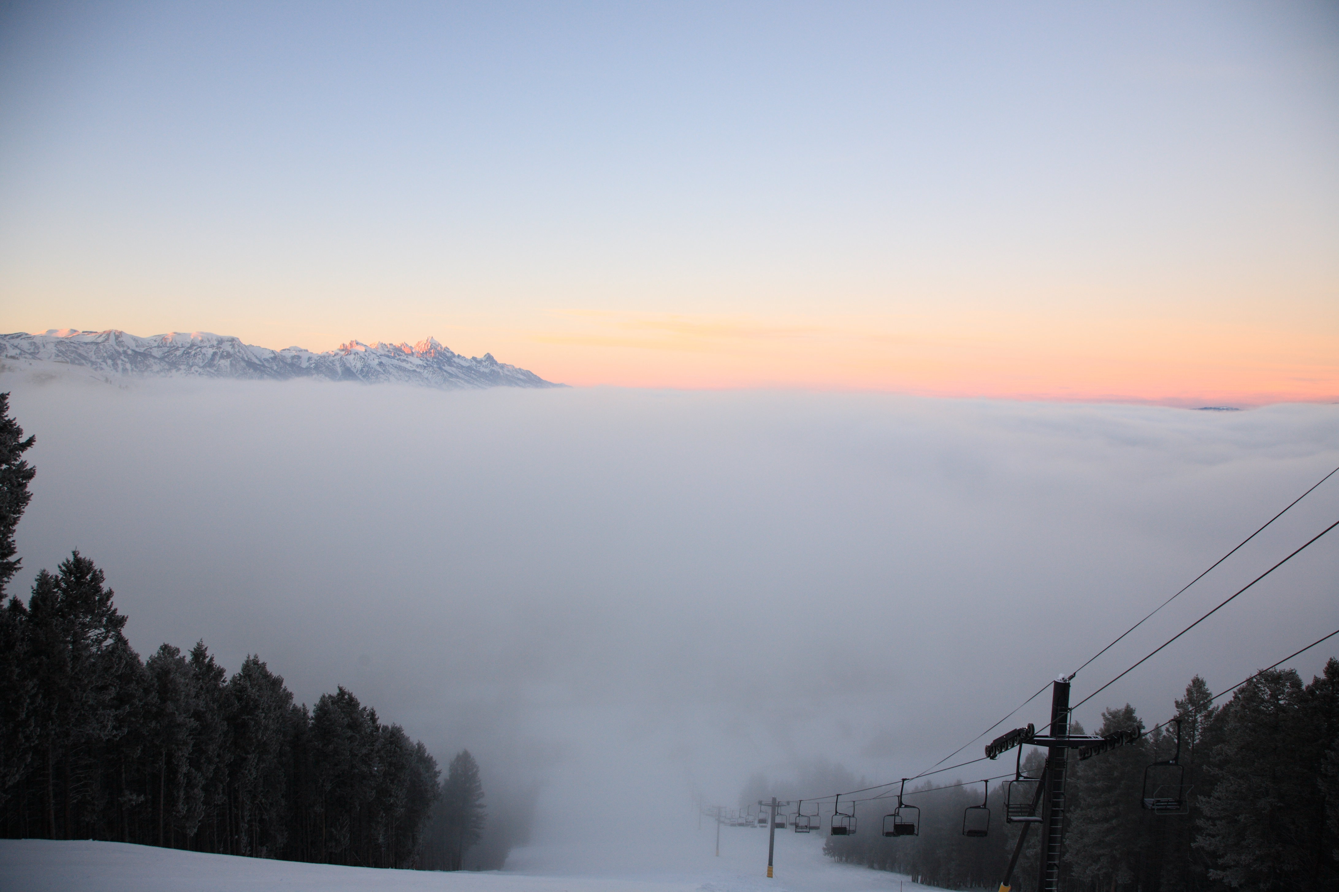 Teton Village and as the sun broke through the edge of the low cloud cover