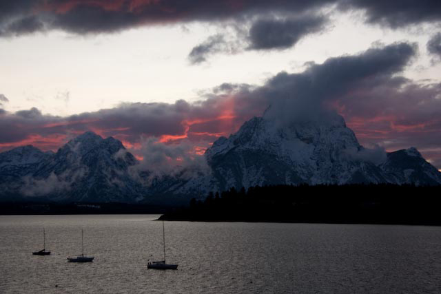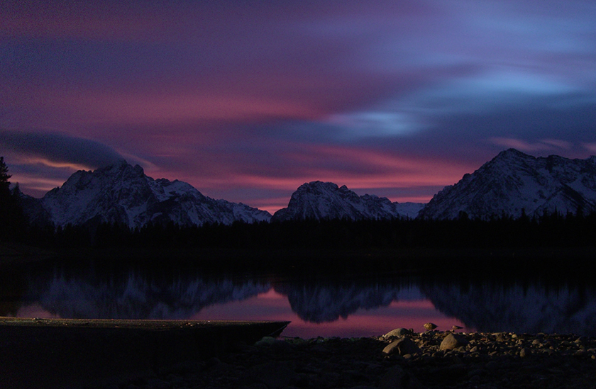 Jackson Lake just after sunset.