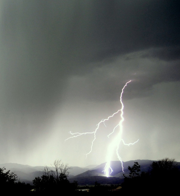 Lone lightning bolt in front of the