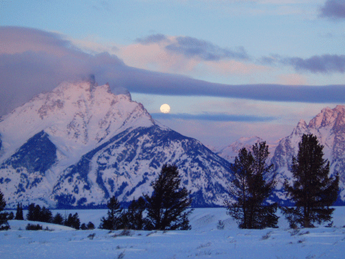 Moon setting behind the Tetons 3/7/04