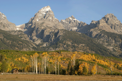 The Grand Teton and golden aspens in