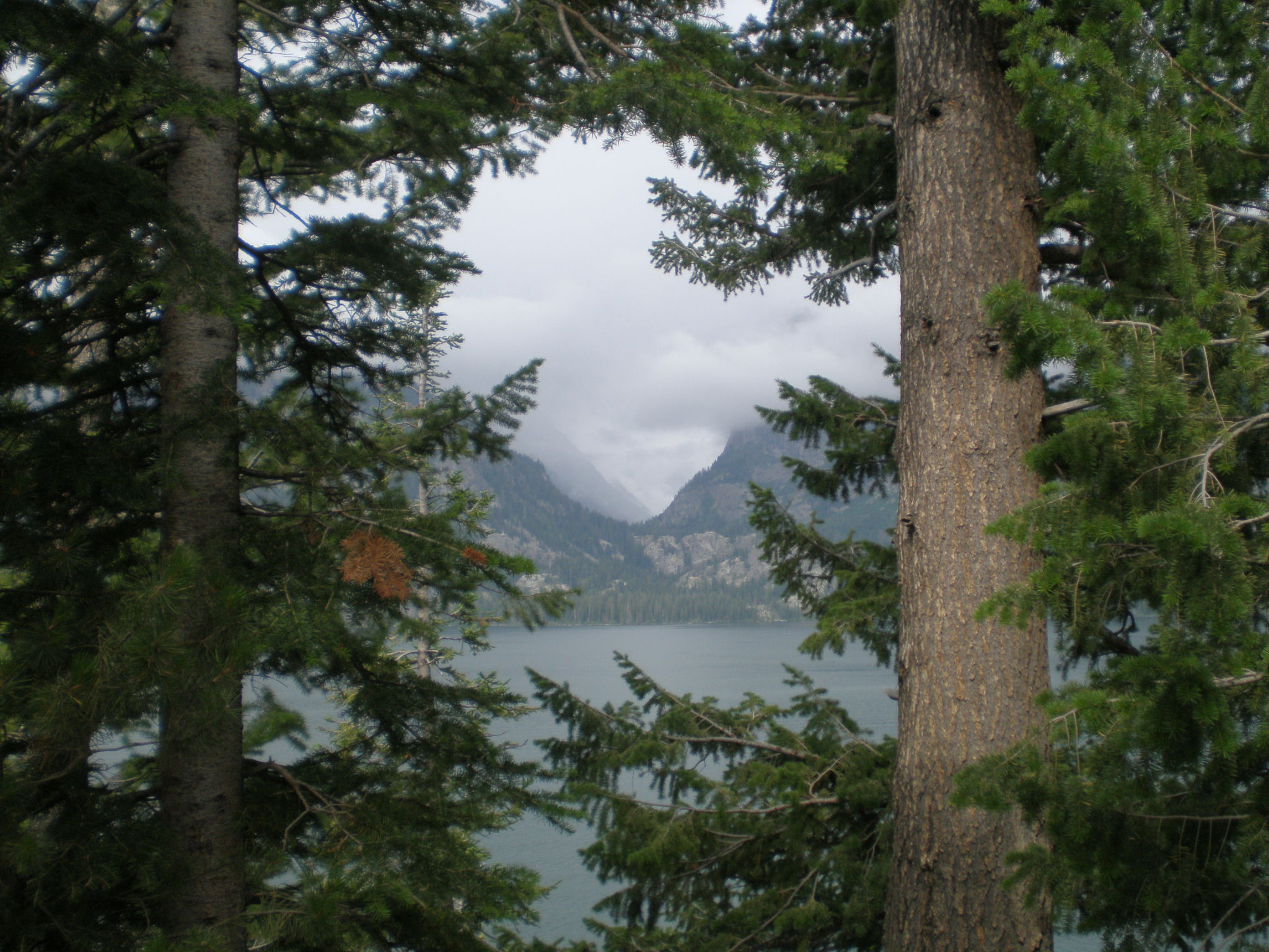 Looking across Jenny Lake on a gray