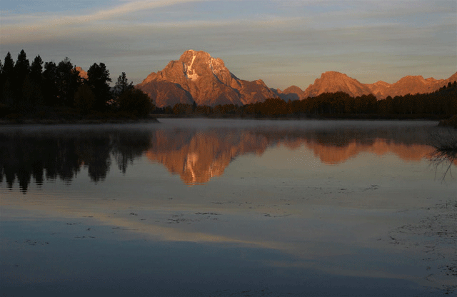 Sunrise on Mt. Moran, reflected in